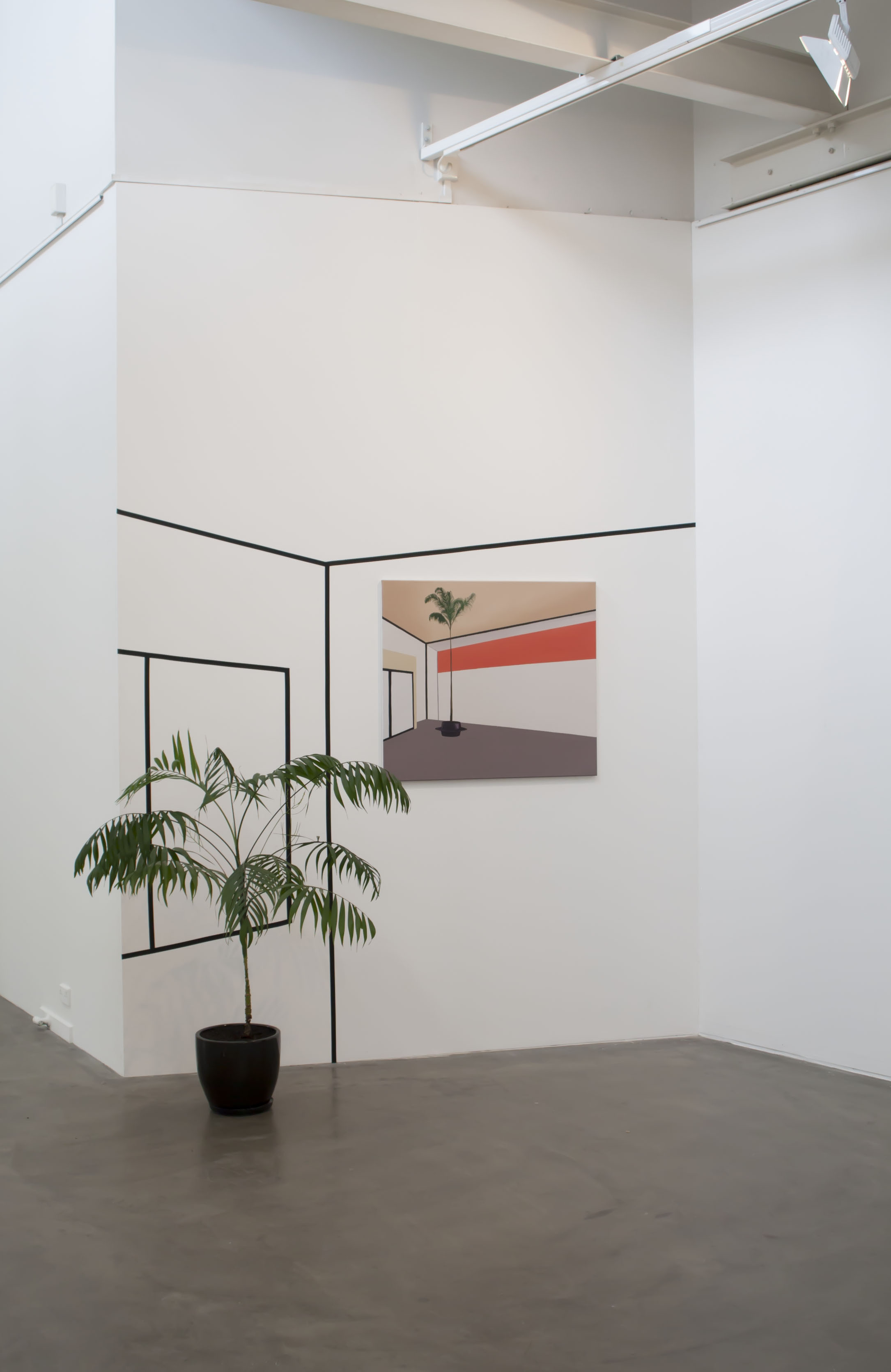 Installation (potted plant, black tape, painting), ANCA Gallery, Canberra, 2013